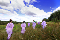 We are of the earth and return there. Our bodies are made of the same elements, originating in the stars billions of years ago. Our sustenance comes from the earth and when we die our nutrients are recycled. There is no boundary or distinction between the human, the landscape, and the eternal. This performance is in part a response to the iconic, ancient landscape of Wittenham Clumps. Accompanied by atmospheric koto music from Keiko Kitamura.