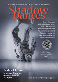 Café Reason will present work-in-progress from its current project, Body Ecologies: Beyond the Human, a discovery and celebration of the physical self and our complex and timeless relationship with the Earth. With original live music from Malcolm Atkins.