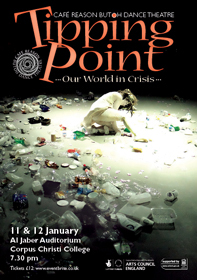 In a commission by the University of Hertfordshire, Café Reason presents its latest large-scale show 'Tipping Point'. With just 12 years for the world to act on climate change, this eclectic new work features original live music, projection, bizarre costume, and found objects, and offers a creative, challenging, multimedia response to the threats facing our fragile planet.For more information about the show see the Tipping Point page.