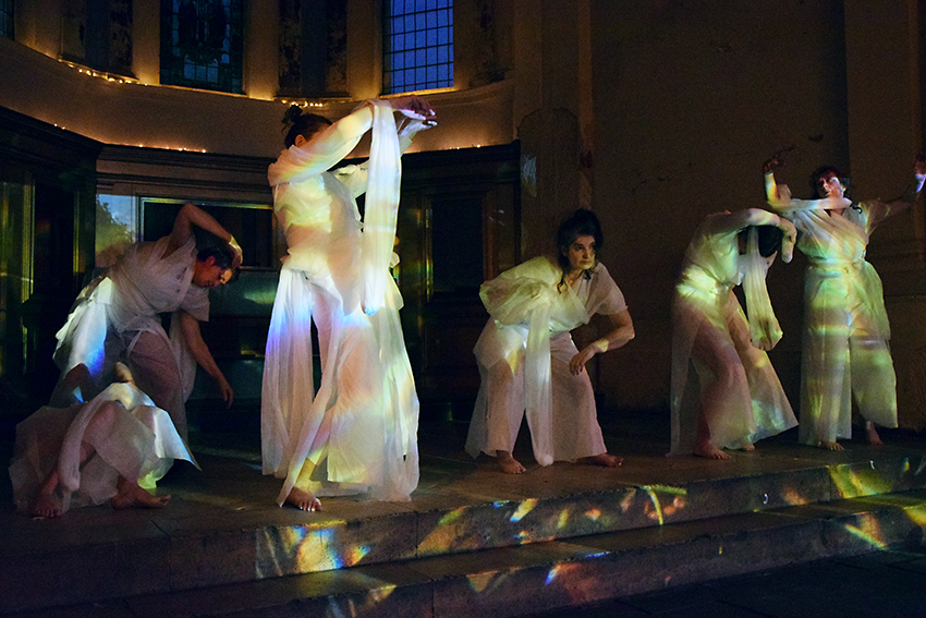 The next vignette of the evening, Hearing, moved from the silent body to the solo, a cappella voice of Anne Ryan. A voice both deeply human, yet transcendent, singing suggestively the beauty of hidden things, singing for the quiet ones who need a voice, gently filling the acoustics of the old church.