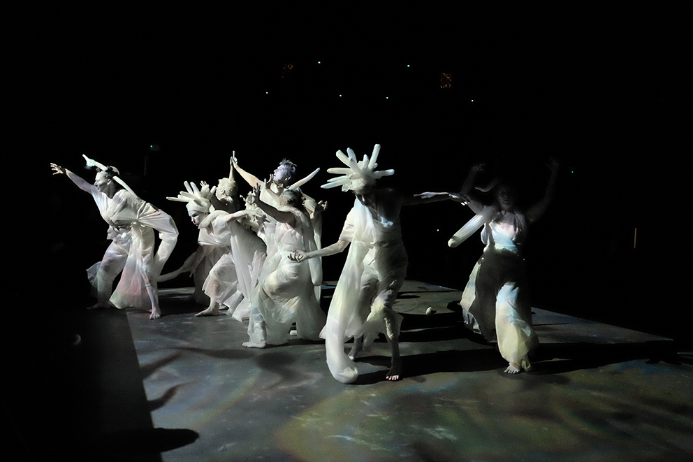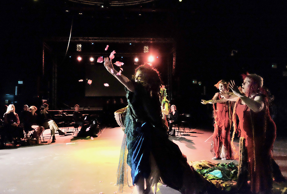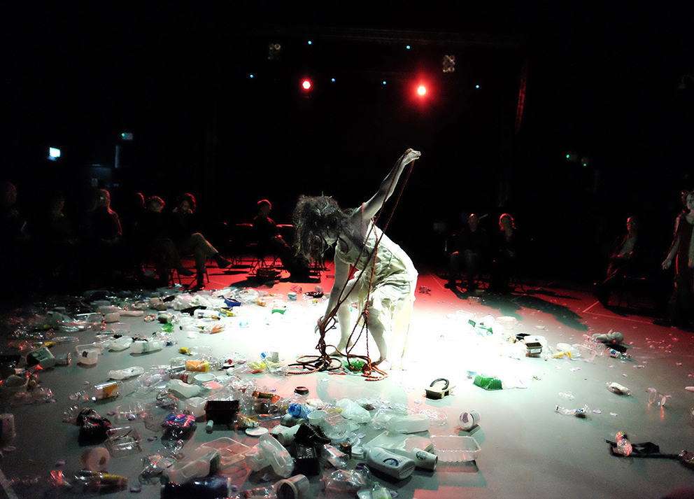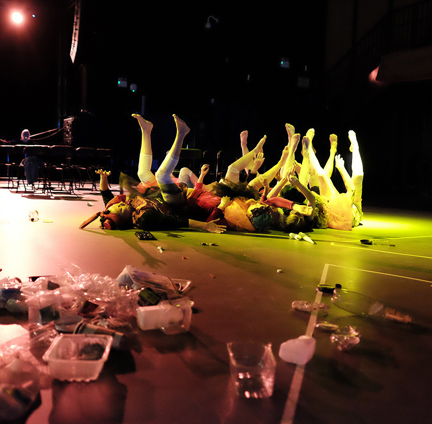 Using specially composed and improvised live music and vocals from both dancers and singers, together with pre-recorded soundscapes, original video and projection, bizarre costume, and a lot of plastic (!), with themes of migration, change, and crisis constant refrains, Tipping Point shines a slantwise, shifting light on our complex and evolving relationship with the Earth.